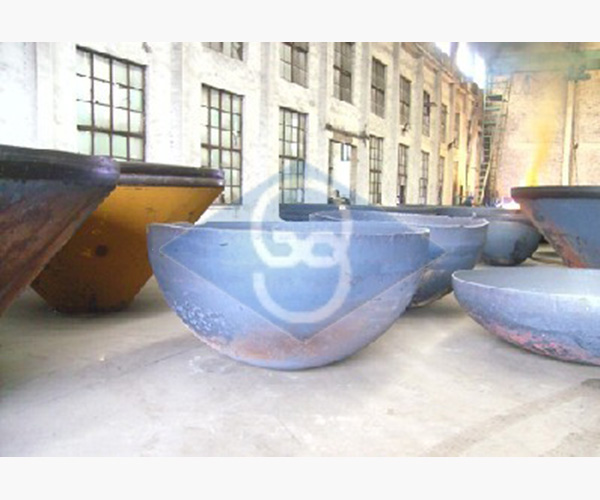 半球形封头 壳体轴向截面为半圆形。直径较小的半球形封头可整体压制成型,但直径较大的由于其深度较大,整体压制有困难,故需采用数块大小相同的梯形球瓣和顶部中心的一块圆形球面板(球冠)组焊而成,其结构见图。半球形封头与其他形式封头相比较,在直径和承压相同的条件下,所需厚度小,封头容积相同时其表面积小,用料省。受力很均匀。但由于制造困难,一般除用于压力较高、直径较大的压力容器外,其他容器较少采用。